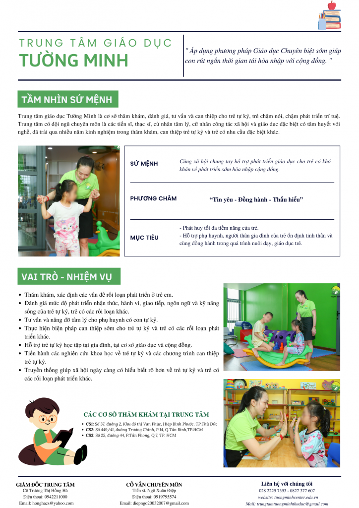 Trên đây là những thông tin cơ bản về Trung tâm hỗ trợ phát triển giáo dục Tường Minh – Bim Bim, mọi thông tin góp ý, phản hồi, quý phụ huynh, học viên vui lòng số điện thoại: 0919795574 – 02822297393 để được giải đáp hoặc truy cập website: tuongminhcenter.edu.vn để biết thêm thông tin.