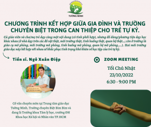 CHƯƠNG TRÌNH PHỐI HỢP GIỮA GIA ĐÌNH VÀ TRƯỜNG CHUYÊN BIỆT TRONG CAN THIỆP CHO TRẺ TỰ KỶ – Ngày 23/10/2022